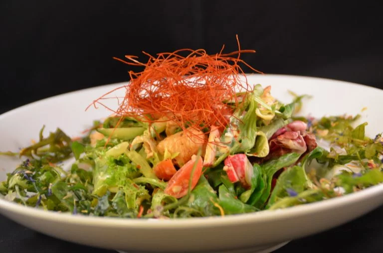 diverse Salate der Saison mit verschiedener Auswahl an Dressings